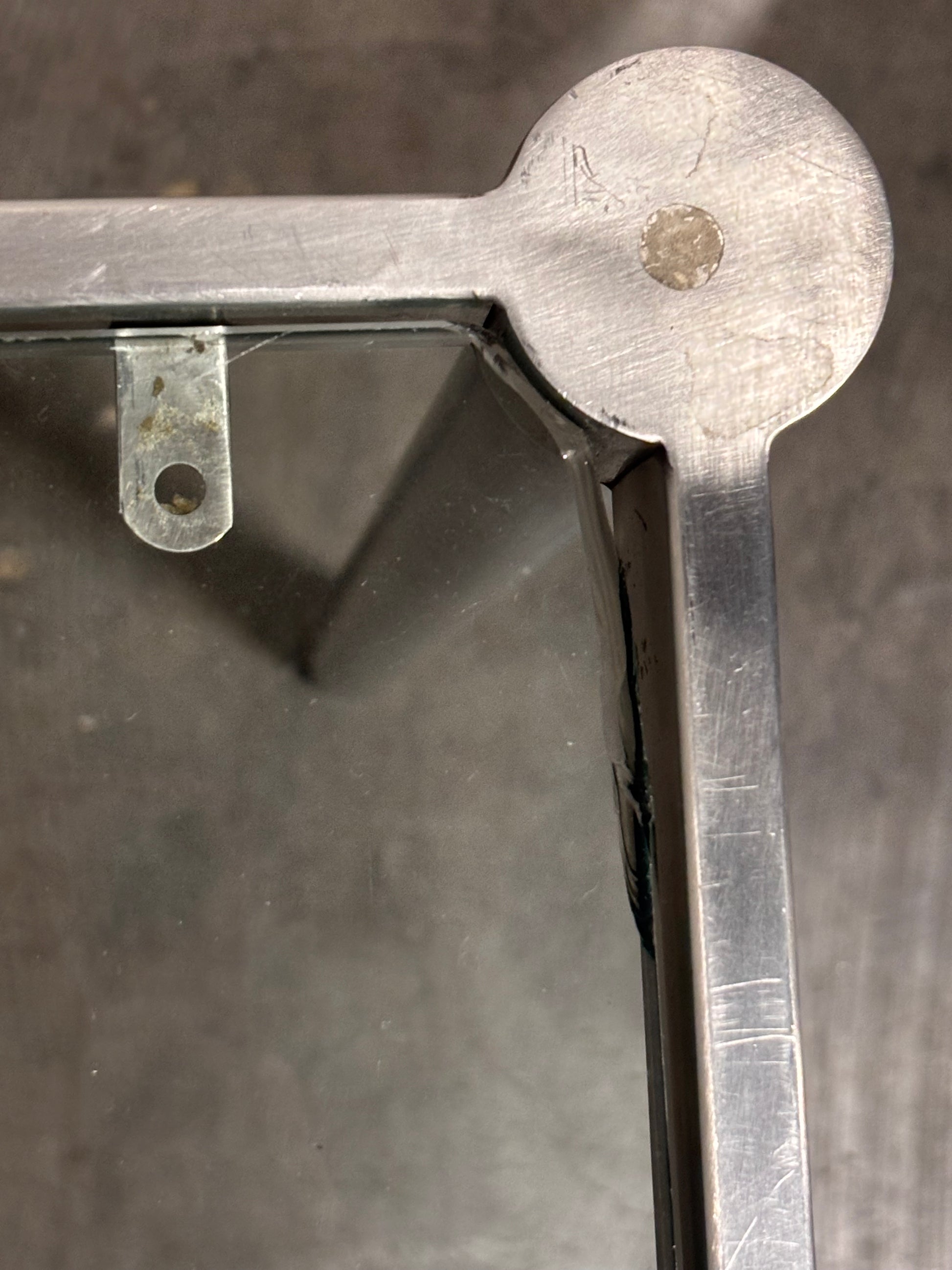 Condition: Fair. Glass top has a visible chip on the edge. Item is sold as-is.