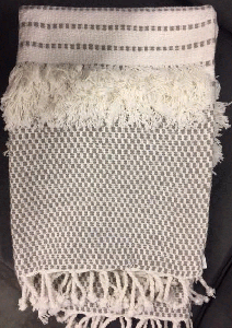 GREY & CREAM W/ TASSLES/FRILL