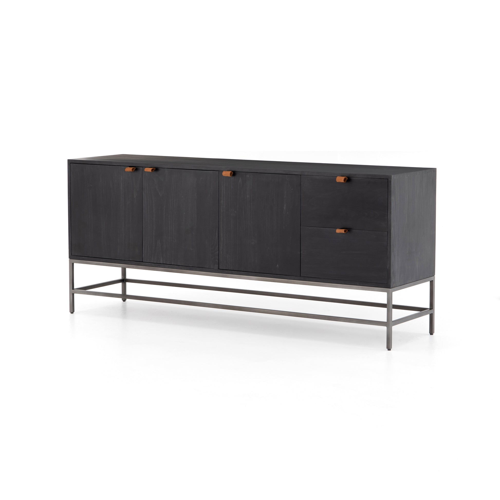 Credenza - Trey Black Wash w/ Leather Handle - 72"